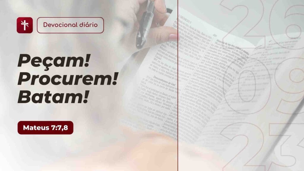 “Peçam, e receberão. Procurem, e encontrarão. Batam, e a porta lhes será aberta. Pois todos que pedem, recebem. Todos que procuram, encontram. E, para todos que batem, a porta é aberta.”